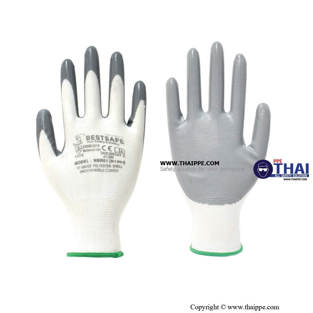 NBR-01 ถุงมือเคลือบโฟมไนไตรเทา Size: XL