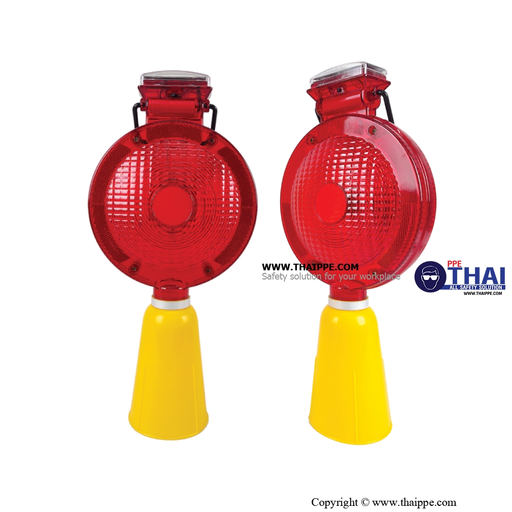 ไฟแฟลชโซล่าเซลล์ 3 นิ้ว สำหรับติดกรวยจราจร (ราคาไม่รวมกรวยจราจร) สี : แดง
