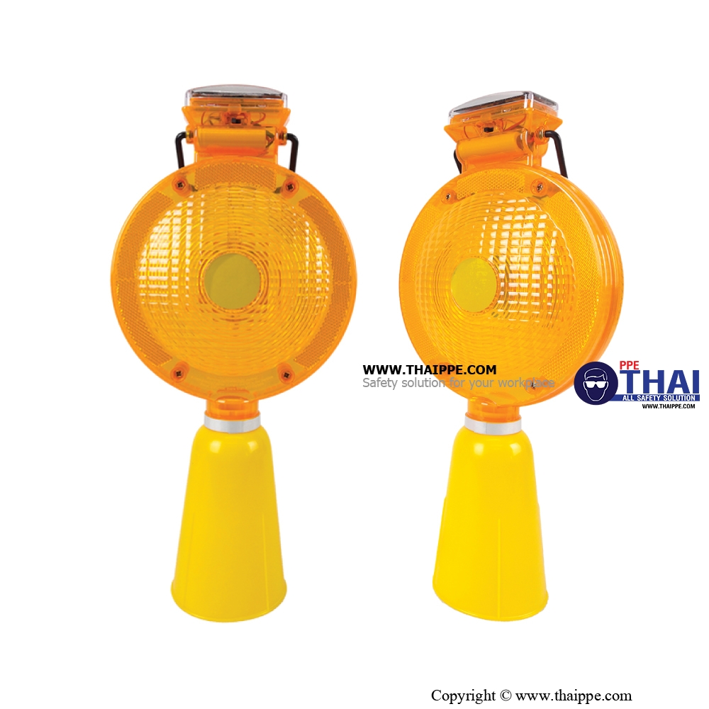 ไฟแฟลชโซล่าเซลล์ 3 นิ้ว สำหรับติดกรวยจราจร (ราคาไม่รวมกรวยจราจร) สี : เหลือง